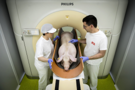 Por:&nbsp;Maria Font-i-Furnols y Albert Brun. Programa de Calidad y Tecnolog&iacute;a Alimentaria del IRTA. Fotos:&nbsp;IRTA Los rayos X fueron descubiertos por W.C. Roentgen en 1895. Son ondas electromagn&eacute;ticas con una longitud de entre 0.01 y 10 nan&oacute;metros que pueden atravesar la materia, perdiendo parte de su energ&iacute;a. Gracias a esta atenuaci&oacute;n energ&eacute;tica de la fuente de radiaci&oacute;n, pueden obtenerse im&aacute;genes del cuerpo atravesado. En 1972 el Dr. Godfrey Hounsfield describi&oacute; y puso en pr&aacute;ctica la tomograf&iacute;a axial computarizada, conocida m&aacute;s adelante como tomograf&iacute;a computarizada (TC). El t&eacute;rmino axial ha desaparecido ya que las im&aacute;genes se pueden tomar de manera axial, (una imagen perpendicular tras otra a una distancia determinada), o helicoidal, (im&aacute;genes de manera continua siguiendo la forma de una h&eacute;lice). Desde Hounsfield hasta la actualidad se han ido incorporando diversos avances con el objetivo de acortar el tiempo de escaneado, bajar la dosis de radiaci&oacute;n y mejorar la calidad de la imagen. La teor&iacute;a de la TC se fundamenta en el coeficiente de atenuaci&oacute;n que experimenta el haz de rayos X al atravesar la materia recogida por los detectores, los cuales giran 360&deg; alrededor del objeto y de manera sincronizada con la fuente de rayos X. <p style="text-align: center;"> Los datos obtenidos se procesan mediante algoritmos de reconstrucci&oacute;n para producir una imagen en una escala de grises, en la cual los diferentes tejidos se pueden diferenciar ya que la atenuaci&oacute;n es diferente en funci&oacute;n de las distintas densidades que posee cada tejido. Los valores de atenuaci&oacute;n se expresan en unidades Hounsfield con una escala que va desde -1.024 (no absorci&oacute;n- aire) hasta +3.071 (absorci&oacute;n completa) para la mayor&iacute;a de los equipos. Convencionalmente, se consideran los siguientes rangos para los tres tejidos principales: 1.&nbsp;&nbsp;&nbsp;&nbsp;&nbsp;Tejido graso. Rango entre -100 y 0 unidades Houns&shy;field&nbsp; 2.&nbsp;&nbsp;&nbsp;&nbsp;&nbsp;Tejido muscular. Rango entre +0 y +120 unidades Hounsfield 3.&nbsp;&nbsp;&nbsp;&nbsp;&nbsp;Tejido &oacute;seo. Rango entre 120 y 2000 unidades Hounsfield Sin embargo, estos valores son aproximados y, por ello, hay que adaptarlos para cada equipo, tipo de producto y condiciones de medida. &iquest;C&oacute;mo funciona un TC? El proceso de escaneo consiste en un emisor y un receptor de rayos X que giran circularmente alrededor del animal escaneado, el cual produce una atenuaci&oacute;n de los rayos X m&aacute;s o menos importante en funci&oacute;n de la densidad de los tejidos del cuerpo. Esta atenuaci&oacute;n es detectada y reconstruida en im&aacute;genes en 3D, cuya unidad es el v&oacute;xel. Cada uno de los v&oacute;xeles (unidad m&iacute;nima procesable de una matriz tridimensional) generados tiene asociado un valor de atenuaci&oacute;n (unidades Hounsfield) y se conoce su volumen en funci&oacute;n de las caracter&iacute;sticas de adquisici&oacute;n de la imagen.&nbsp; <p style="text-align: center;"> As&iacute;, el an&aacute;lisis de estos v&oacute;xeles mediante softwares espec&iacute;ficos permite determinar el volumen de los tejidos en funci&oacute;n de su densidad, permitiendo su clasificaci&oacute;n y cuantificaci&oacute;n. Adem&aacute;s la tecnolog&iacute;a permite realizar medidas lineales o &aacute;reas sobre las im&aacute;genes en zonas anat&oacute;micas concretas. Dependiendo de la necesidad y el objetivo del estudio se puede adecuar el n&uacute;mero de im&aacute;genes obtenidas, desde el escaneo total del animal en im&aacute;genes cada 1-10 mm hasta el escaneo de zonas anat&oacute;micas concretas. La TC, al ser una tecnolog&iacute;a no invasiva posee un gran potencial en ganader&iacute;a. La utilizaci&oacute;n de esta tecnolog&iacute;a en producci&oacute;n animal ofrece nuevas v&iacute;as para la mejora productiva, ya que puede utilizarse para estimar diferentes par&aacute;metros tanto a nivel de granja como de sala de despiece o industria procesadora.&nbsp; Aplicada en la producci&oacute;n animal posee una gran ventaja y es que permite determinar la composici&oacute;n del cuerpo del animal o de una zona en concreto de manera no invasiva, tanto si el animal est&aacute; vivo (evitando los sacrificios seriados en diversos momentos del engorde), como en su canal o piezas, permitiendo, por tanto, conocer esta composici&oacute;n sin necesidad de sacrificar al animal o, en caso de hacerlo en canal, sin necesidad de &ldquo;destrozar&rdquo; la canal mediante su disecci&oacute;n. Determinaci&oacute;n de la composici&oacute;n de los animales o canales Desde el a&ntilde;o 2009 la tomograf&iacute;a computarizada ha sido considerada por la UE como un m&eacute;todo de referencia para la determinaci&oacute;n del porcentaje de magro de la canal de porcino alternativo a la disecci&oacute;n.&nbsp; Para determinar la composici&oacute;n de la canal, las im&aacute;genes obtenidas con el equipo de tomograf&iacute;a se pueden estudiar desde diferentes puntos de vista:&nbsp; &middot;&nbsp;&nbsp;&nbsp;&nbsp;&nbsp; Mediante el desarrollo de programas inform&aacute;ticos que permitan el tratamiento automatizado de im&aacute;genes. &middot;&nbsp;&nbsp;&nbsp;&nbsp;&nbsp; Mediante la segmentaci&oacute;n de los diferentes tejidos en funci&oacute;n de su densidad.&nbsp; &middot;&nbsp;&nbsp;&nbsp;&nbsp;&nbsp; Mediante la realizaci&oacute;n de medidas concretas en puntos anat&oacute;micos de inter&eacute;s. &nbsp; &middot;&nbsp;&nbsp;&nbsp;&nbsp;&nbsp; Mediante regresi&oacute;n multivariante con t&eacute;cnicas estad&iacute;sticas avanzadas. A partir de las im&aacute;genes (formato DICOM) que proporciona el equipo (que pueden ser m&aacute;s de 400 por animal si se toma una imagen cada 3 mm) se obtiene el valor Hounsfield de cada v&oacute;xel. De esta forma se puede obtener un histograma sumando lo